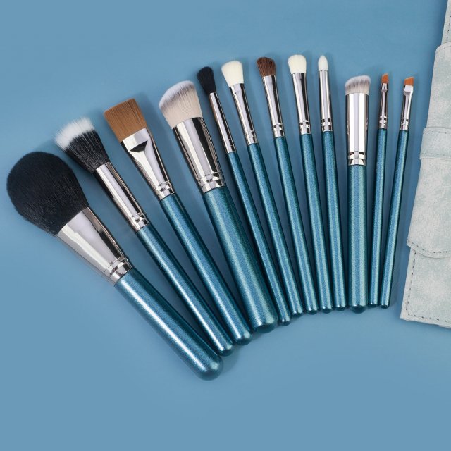 • Complete set: 12 brushes for all makeup needs, from face to eyes to brows.