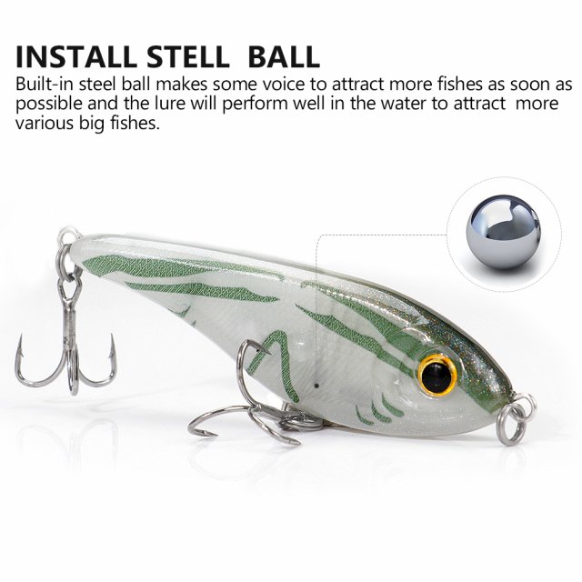 These artificial lures feature a detailed, realistic design complete with 3D eyes and a fish-printed body for maximum visual appeal. Inside each lure is a finely balanced steel-ball chamber that creates natural rattling vibrations as you retrieve, helping predators detect the bait even in murky waters. Durable ABS construction ensures long-lasting performance, while two ultra-sharp treble hooks provide secure, reliable penetration so your catch never slips away.