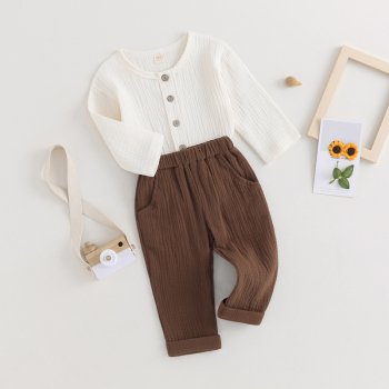 Toddler Boys Cotton Linen Long Sleeve Outfit Set