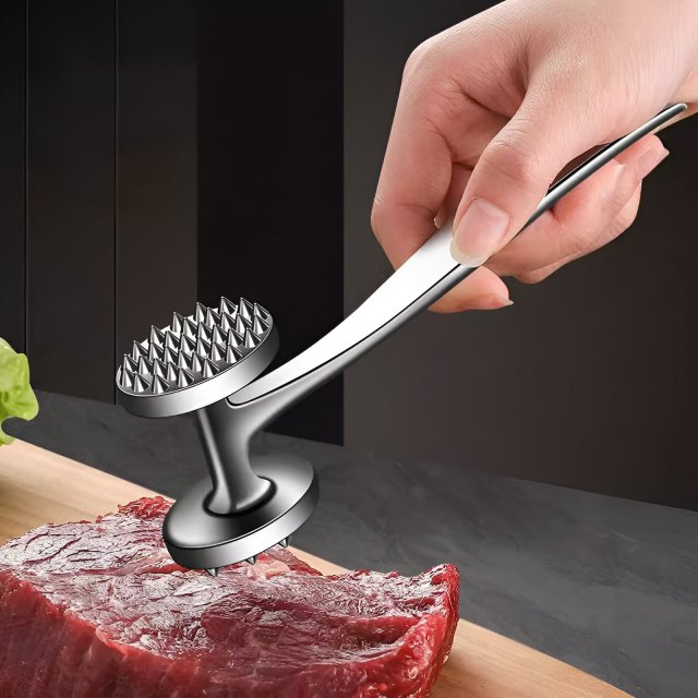 • Double-Sided Design: One side features large spikes for breaking down tough fibers, while the other has smaller spikes for gently flattening meat to even thickness.