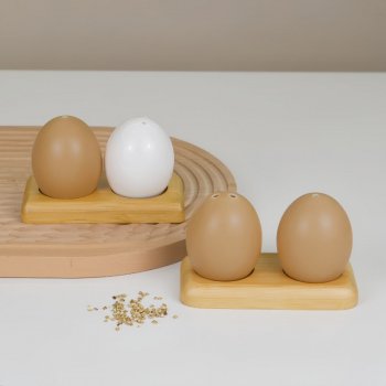 Korean Egg-Shaped Ceramic Seasoning Jar Set with Bamboo Base