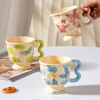 Cute Ceramic Butterfly Coffee Mug – Elegant Tall Cup for Home or Office