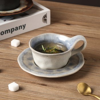 Handmade Retro Ceramic Coffee Cup with Saucer – 160ml Light-Luxury Mug