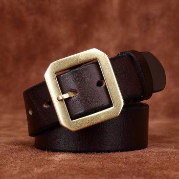 Men’s Genuine Cowhide Leather Belt with Copper Buckle – 1.5 Inch Casual Classic