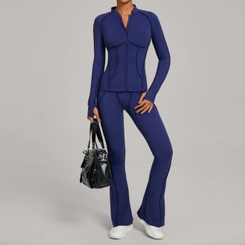 Women’s Autumn Winter Zipper Long Sleeve Fitness Yoga Outfit Two-Piece Set