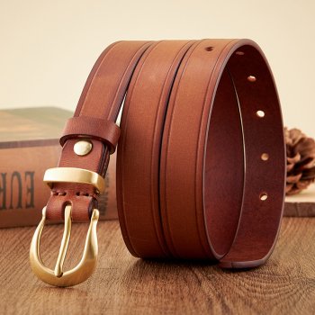 Women’s Genuine Cowhide Leather Belt with Brass Buckle – 0.94 Inch Classic Style