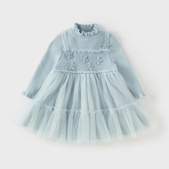 Girls Winter Knit Sweater Dress with Lace & Plush Details