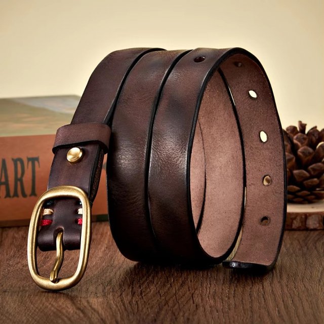 Retro Genuine Leather Western Belt for Women – Copper Buckle Cowboy Style