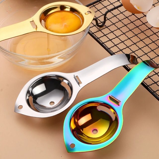 Make every baking and cooking task easier with this stainless steel egg separator designed to separate yolks and whites in just seconds. Whether you’re preparing fluffy meringues, creamy custards, or protein-packed omelets, this handy tool delivers clean, precise separation without the mess. Its smooth metallic finish, sturdy handle, and efficient filter design make it a must-have gadget for any home kitchen.