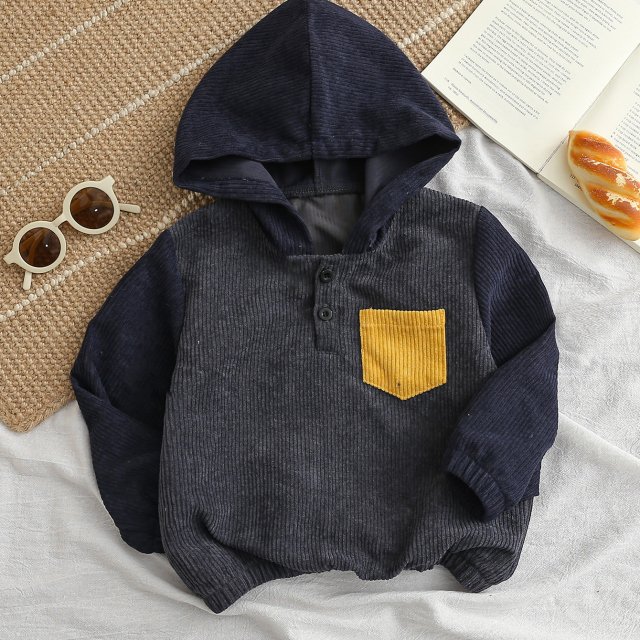 Stylish Boys’ Corduroy Hooded Pullover with Pocket
