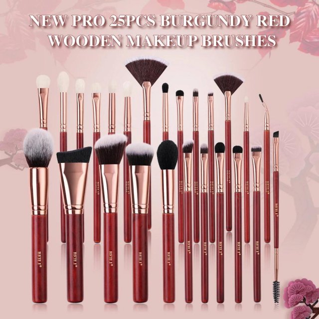 Elevate your makeup routine with this luxurious vintage-inspired makeup brush set in deep burgundy red. Designed for anyone who loves flawless, effortless application, this collection blends natural goat and pony hair with ultra-soft nanofiber and synthetic bristles for smooth, even makeup every time.