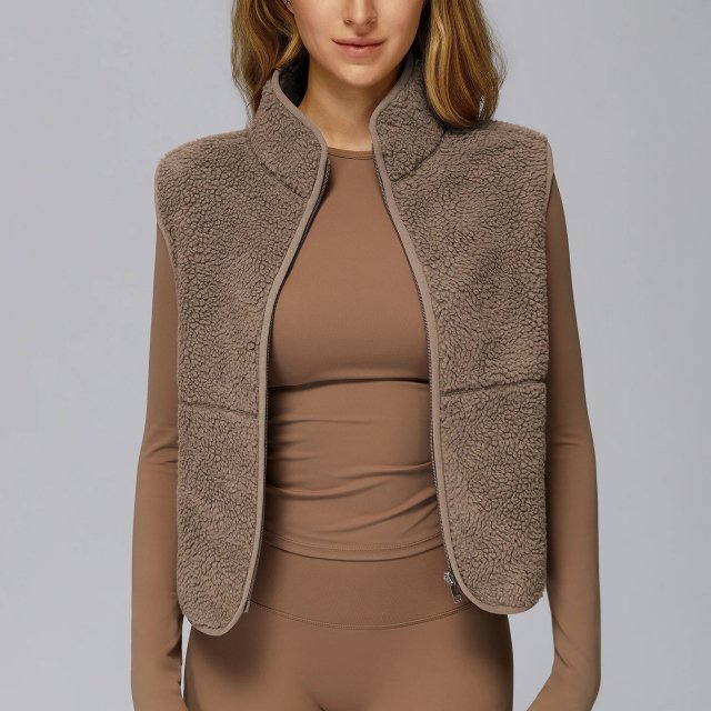 Women’s Fleece-Lined Sports Vest – Stand-Up Collar Sleeveless Zipper-Front Outerwear