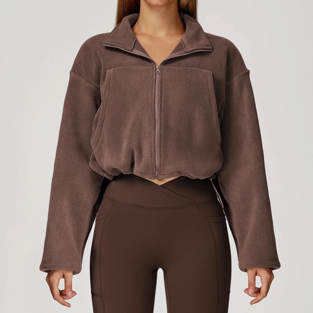 Women’s Thermal Fleece Windproof Jacket with Stand-Up Collar & Drawstring Waist